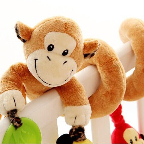 Plush Monkey Spiral Rattle Toy for Baby Cribs and Strollers