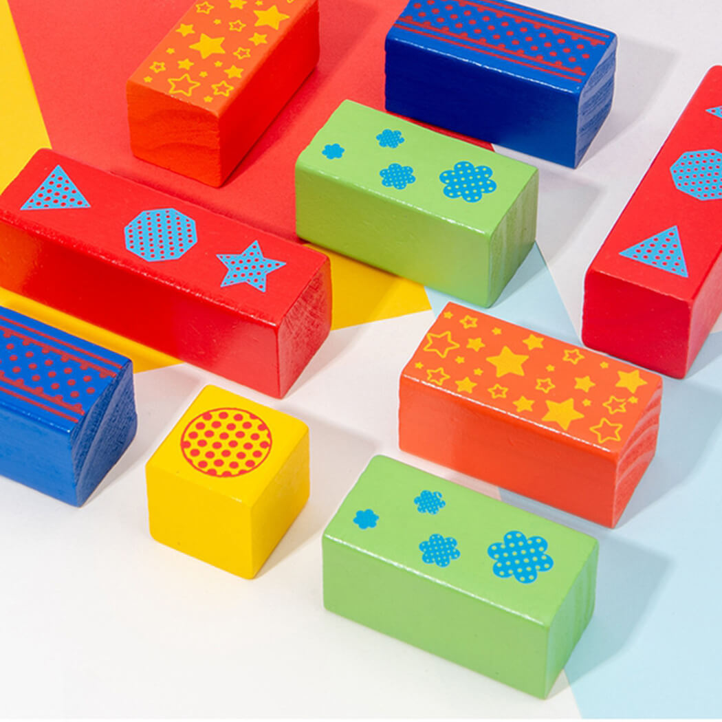 Motricité : Cet ensemble contient des blocs de différentes couleurs et formes. Les enfants peuvent jouer avec des blocs de construction et des billes. Les enfants développeront leurs capacités pratiques et percevront l'espace en trois dimensions.