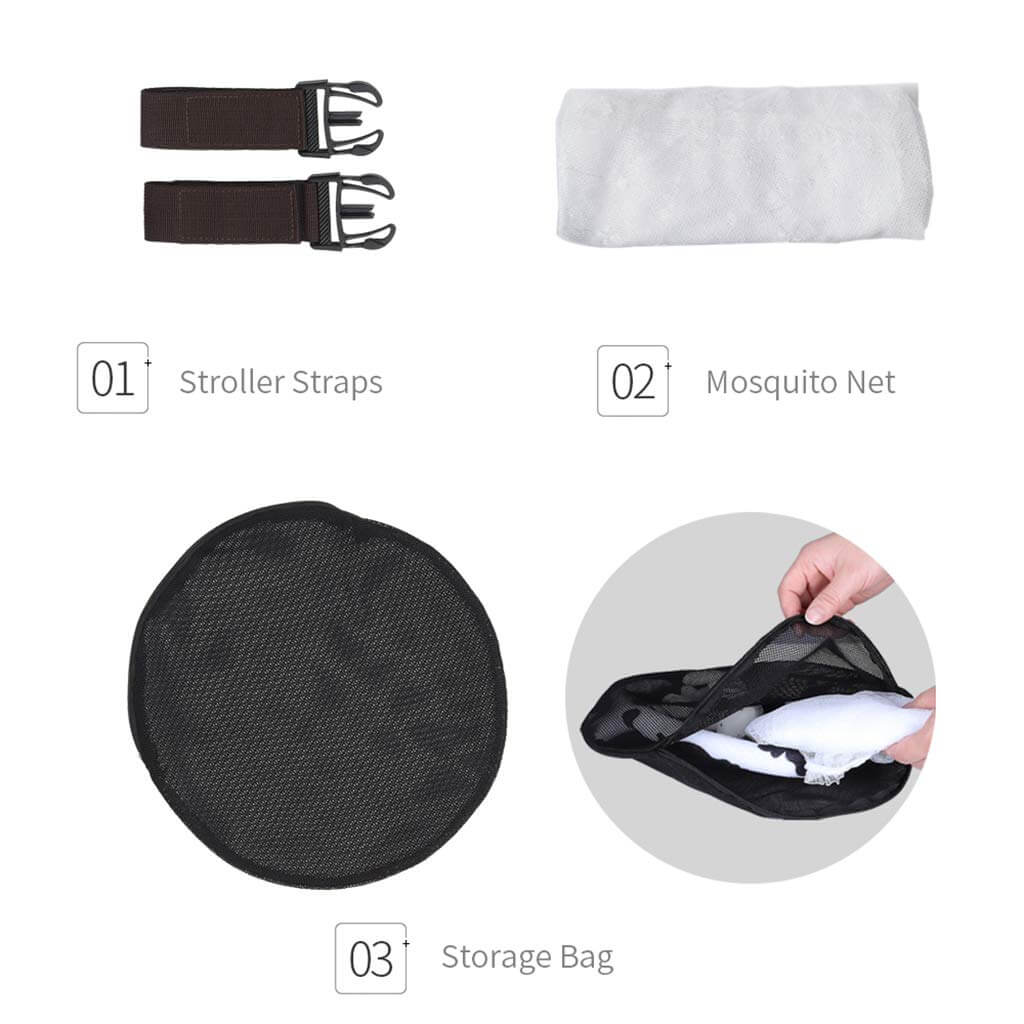 ✔ Accrochez-le à la poussette par ses sangles de poussette amovibles