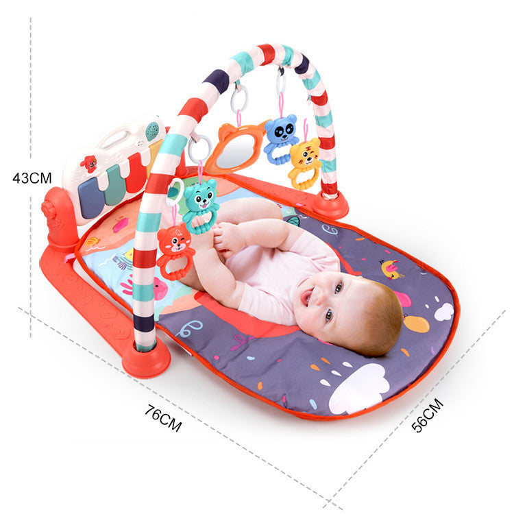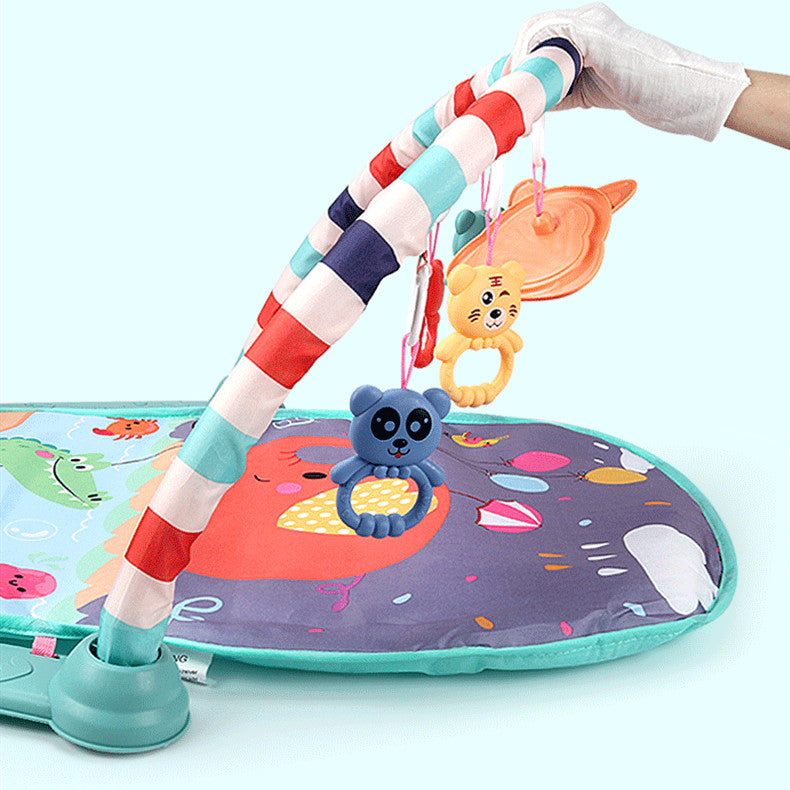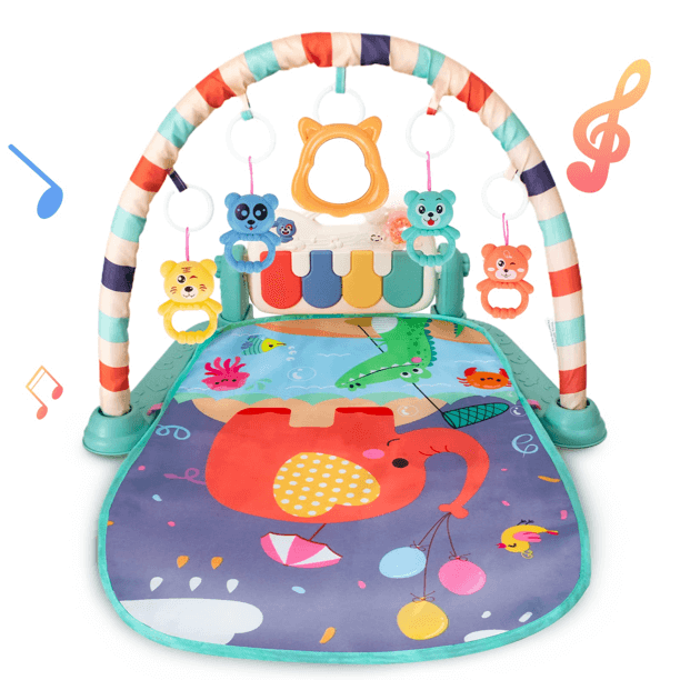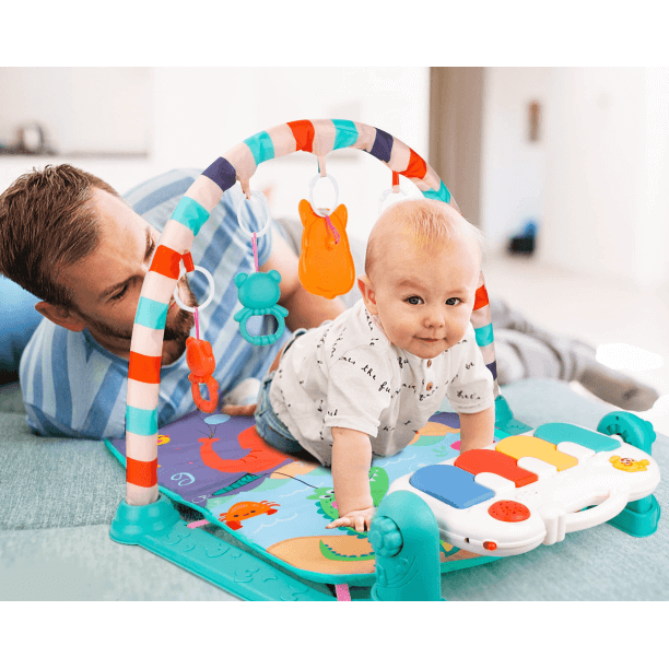 Multifunctionele babyspeelmat met hangend speelgoed en muziek voor de baby entertainment en fitness. De fitness speelmat voor baby's heeft een zacht tapijt met gekleurde bogen, hangers en een voetpiano die de aandacht trekt.