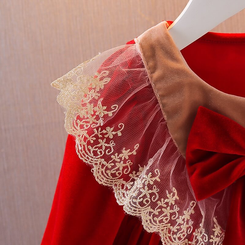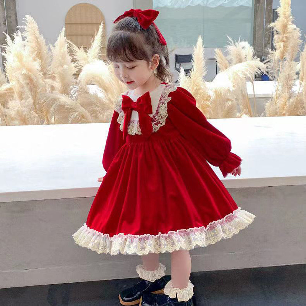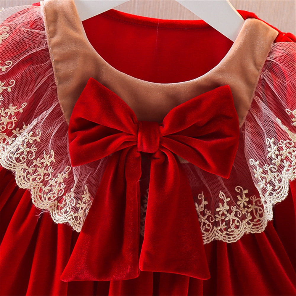 Hübsches Lolita Bow Red Velvet Partykleid für Babymädchen