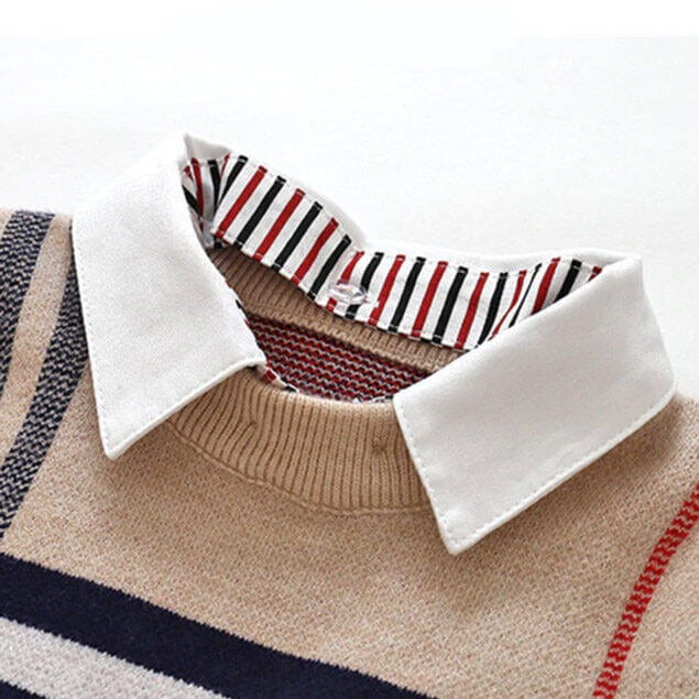 Warme Jacquard Pullover für Kleinkinder in zwei Farben . Der Kragen ist durch Knöpfe leicht abnehmbar/platzierbar und bietet 2 verschiedene Stile, sodass er mit und ohne Kragenhemd getragen werden kann. Tdieses modische Top ist bequem und einfach zu tragen.