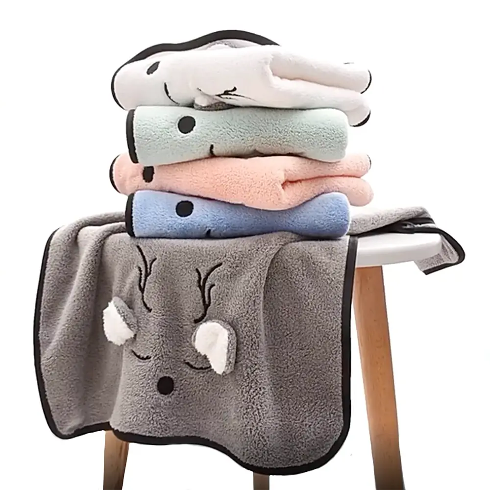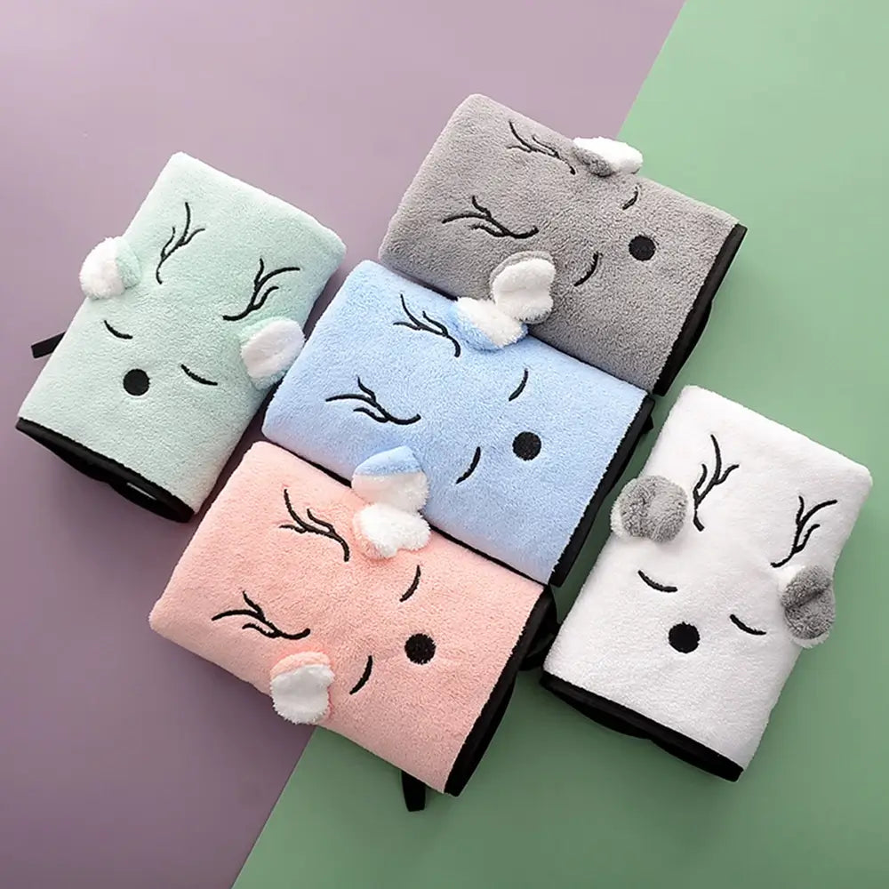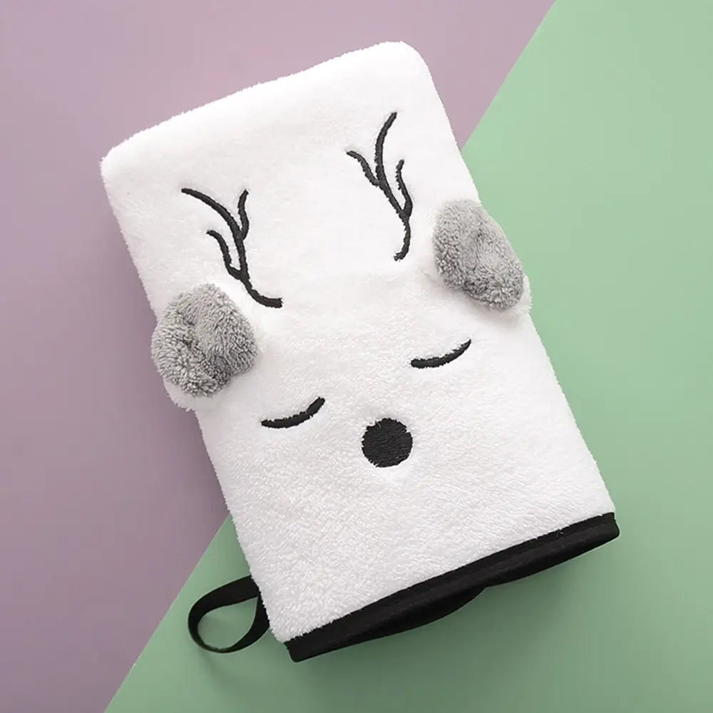 Süßes und flauschiges Handtuch für Kinder mit gesticktem Hirschgesicht und abstehenden Ohren. Dieses Baby-Badetuch ist aus weicher Baumwolle mit hoher Dichte, hoher Feuchtigkeitsaufnahme und sanft zur Haut.
