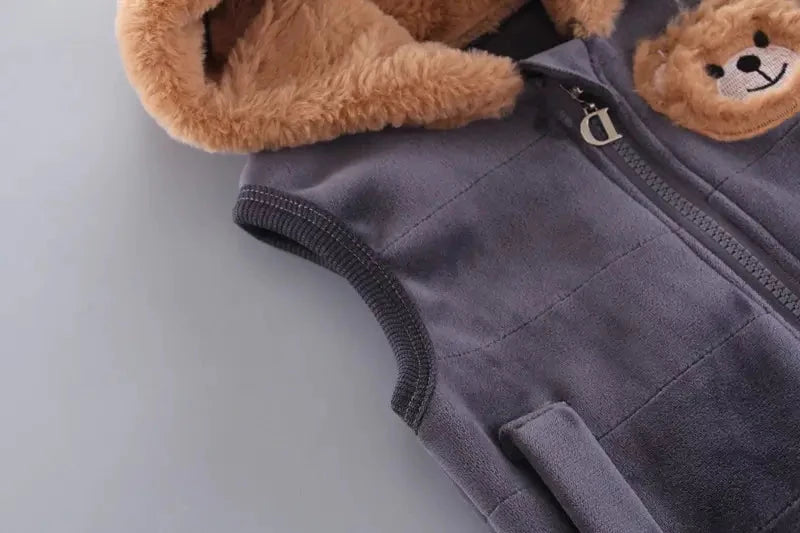 Halten Sie Ihr Kleines mit einem Winteroutfit, einschließlich Oberteilen mit Kapuzenweste und Hose, kuschelig warm.