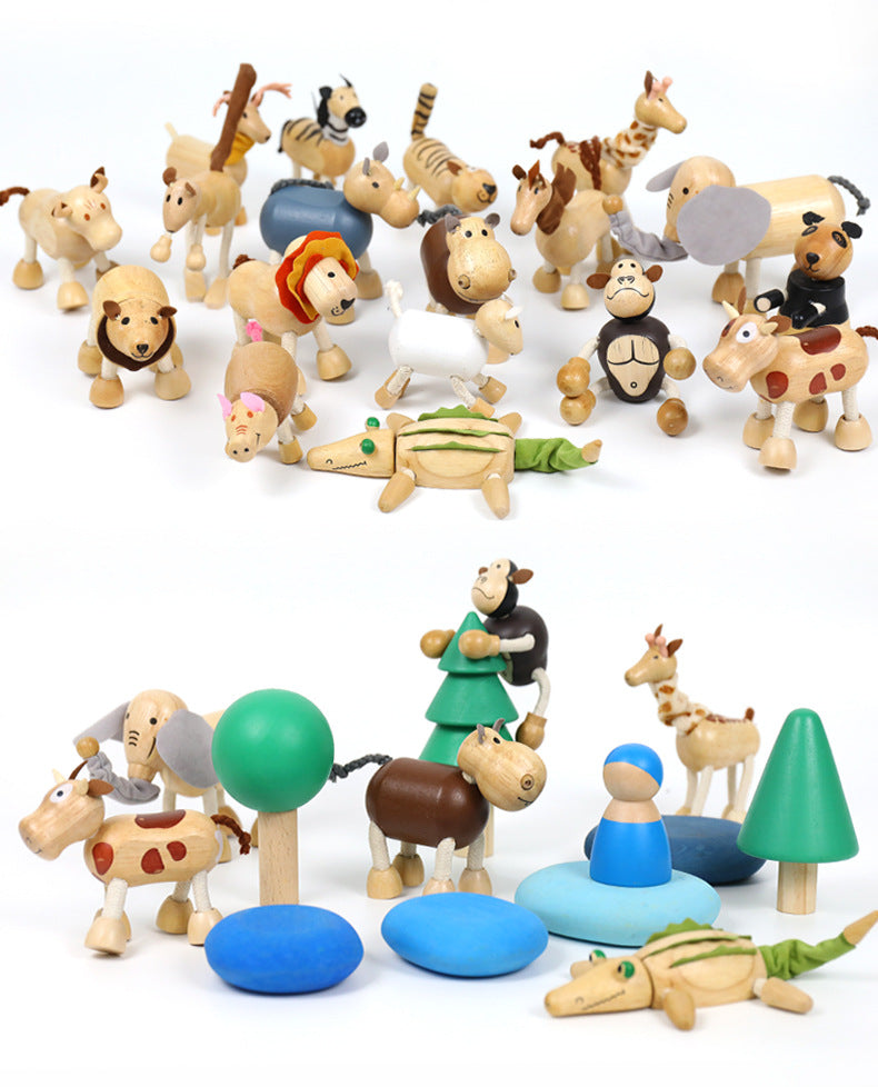 The Toddly bringt eine schöne Sammlung von Tierfiguren aus Holz. Der Mini-Holzzoo Charaktere sind aus Holz und Stoff gefertigt, sodass die Figuren für interaktives Spielen aufgestellt werden können.Mit ihren flexiblen Gliedmaßen kann jedes Tiermodell unterschiedliche Aktionen ausführen.Dies sind echte Spielzeugerbstücke, die nicht nur die wunderbarsten Spielfiguren aus Holz abgeben, sondern auch aussehen niedlich als Heimdekoration.