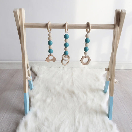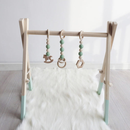 Cadre de jeu pliable en bois pour bébé avec jouets suspendus