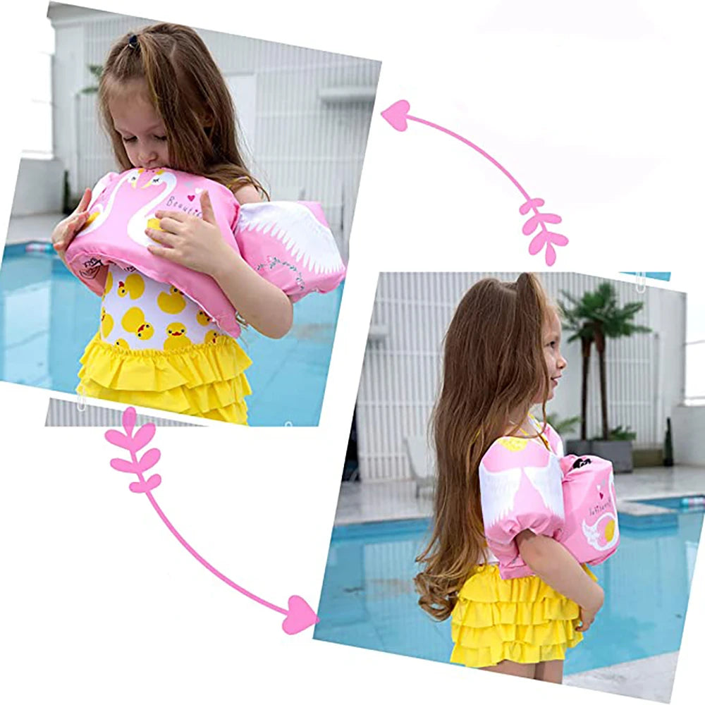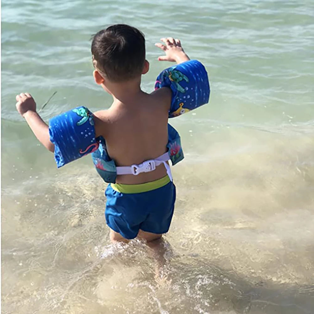 Le gilet de bain pour enfants est conçu pour un maximum de sécurité et de confort. Doté de flotteurs de poitrine et de bras sans air cousus ensemble, le gilet de bain pour les tout-petits est facile à enfiler et sécurisé avec une boucle de sécurité. Sa conception légère assure un bon équilibre et un port confortable, parfait pour les jeunes nageurs pour profiter de la piscine ou de la plage.