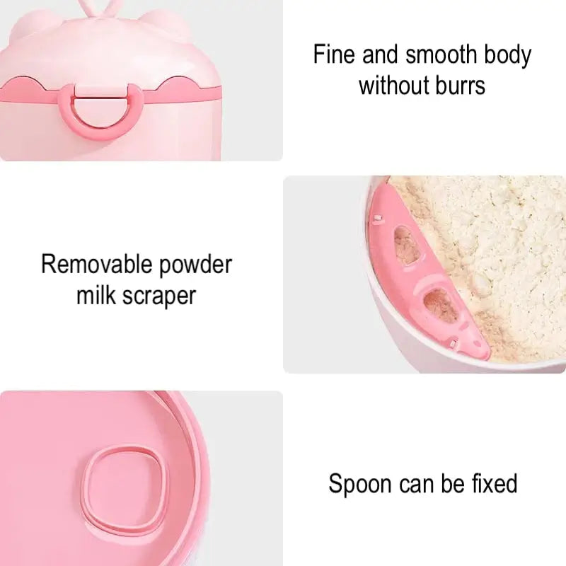 Récipient d'aliments pour bébé multi-usage avec cuillère et grattoir pour le stockage de lait maternisé en poudre. Son wconception d'ouverture latérale donne un accès confortable au contenu des aliments stockés. Emballe facilement les aliments pour bébés comme les céréales, les noix, les fruits et les collations. La petite taille du récipient alimentaire n'occupe pas beaucoup d'espace et le rend pratique à transporter dans le sac de bébé.