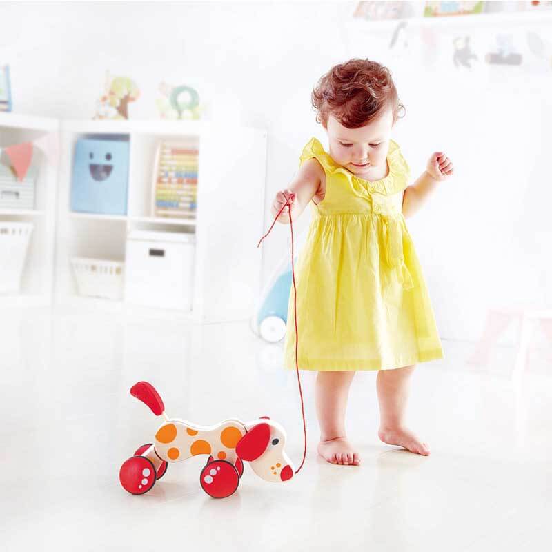 Cet adorable chiot ne se contente pas de se promener : il vacille, se tortille et remue la queue en se déplaçant ! Il peut même s'asseoir avec un peu d'aide et demander une délicieuse friandise. Ce petit jouet pour chien deviendra le meilleur ami de votre enfant. Ce jouet en bois convient parfaitement aux enfants de 12 mois à 3 ans. Les tout-petits apprécieront de promener ce sympathique chiot.