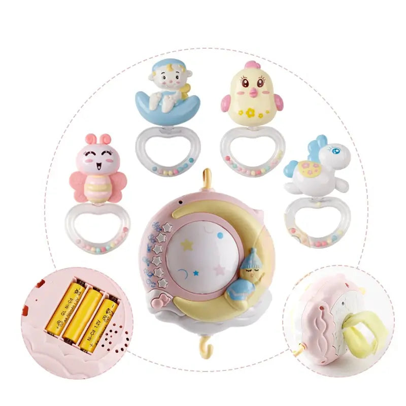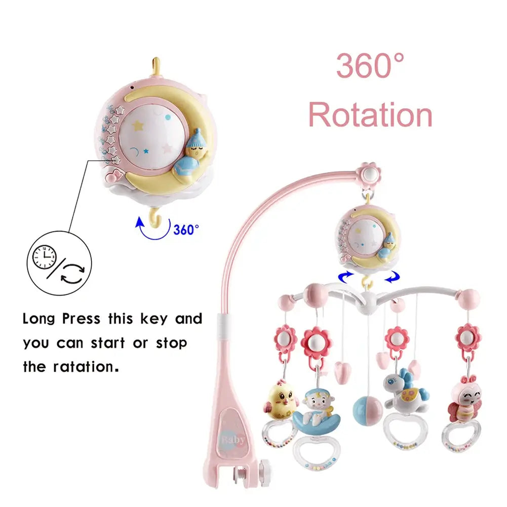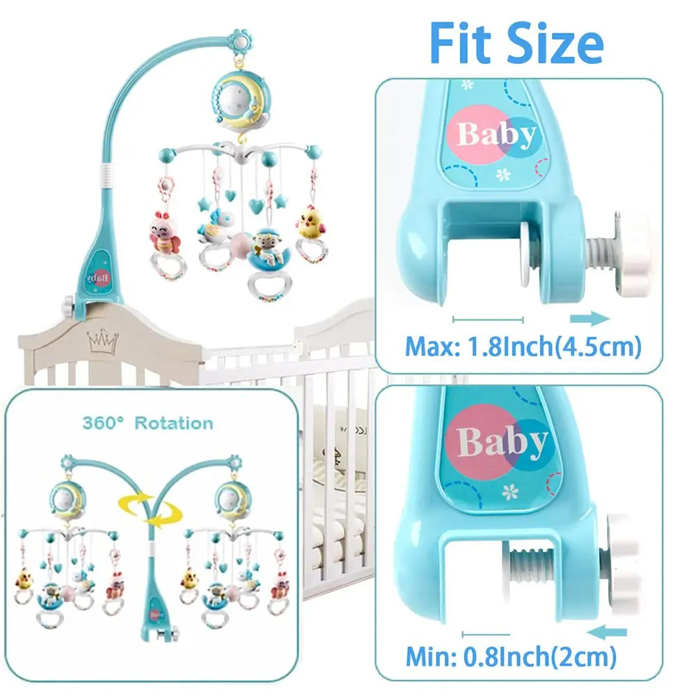 Un joli jouet de montage pour le berceau de votre bébé afin de calmer votre bébé en créant un sentiment de sécurité et de reconnaissance. Le bras mobile rotatif à 360° est vissé dans le lit et les adorables jouets tournent avec des mélodies apaisanteset gardent votre bébé de bonne humeur.