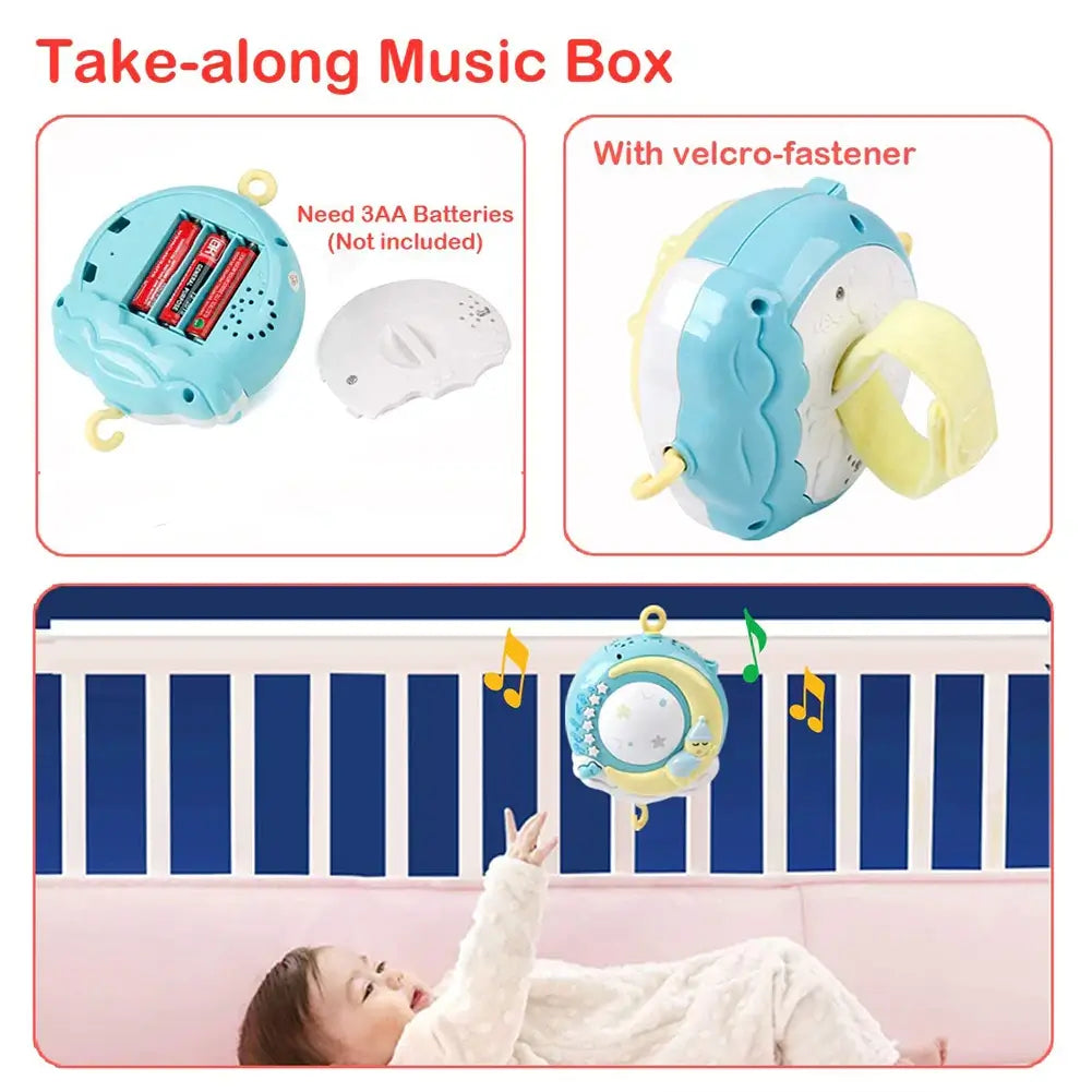 Facile à utiliser : Facile à assembler et à connecter au berceau. Vous pouvez contrôler toutes les fonctions de la boîte à musique avec la télécommande incluse dans le package.