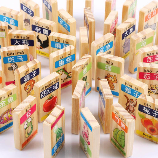 Chinees Engels Leren Houten Domino Blokken Speelgoed Voor Kinderen