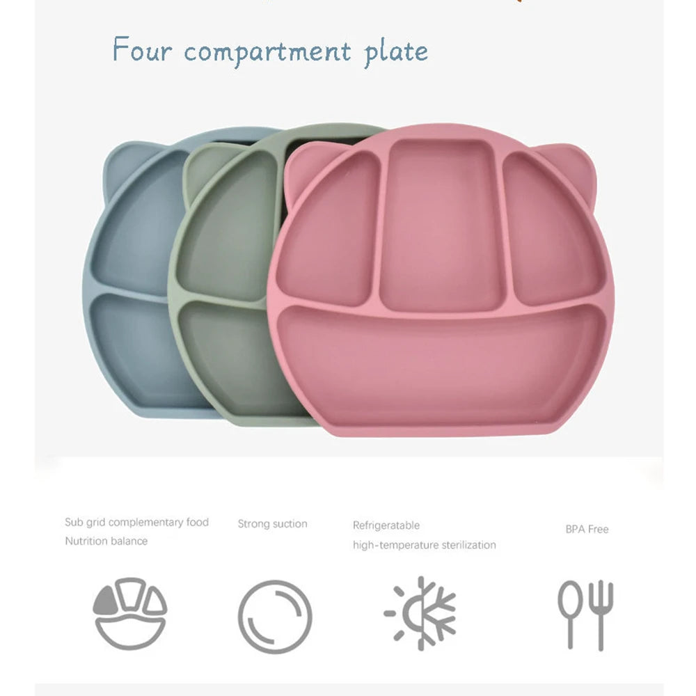 BellaBite babyservies om je kleintje eigen eetgewoonten bij te brengen! Deze all-inclusive bestekset voor peuters bestaat uit een vierdelig bord, een kom, een lepel, een vork, een waterbeker met rietje en een slabbetje met een zak voor eten zonder knoeien. Gemaakt van 100% veilige en BPA-vrije siliconen. Geniet van een zorgeloos diner met deze schattige, betrouwbare set!