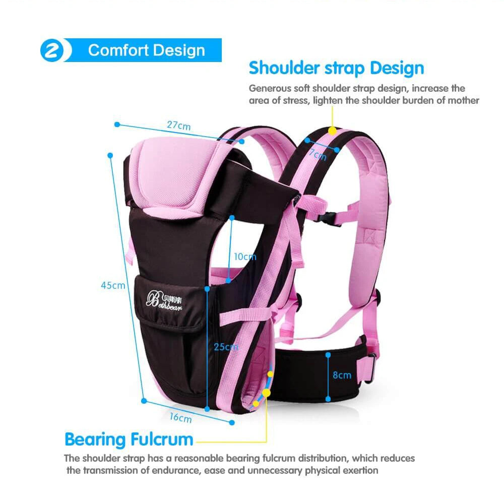 Bethbear's Baby Carrier Backpack is een 4-in-1 draagzak. Je kunt de baby met het gezicht naar je borst dragen, in kangoeroestijl, op de rug en kruisarm als een draagdoek. De draagzak heeft een hoogwaardige schuimvulling en de ademende stof laat de lucht vrij door de draagzak circuleren om jou en je baby koel te houden in alle weersomstandigheden. De draagzakrugzak van Bethbear biedt goede ondersteuning voor het hoofd en de nek van de baby en is geschikt voor het dragen van baby's van 0-30 maanden.