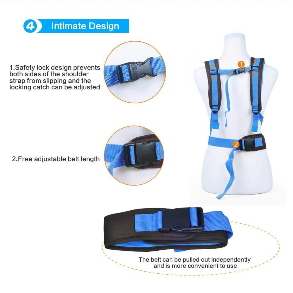 Verlicht de druk: Brede en gewatteerde heupriem en verstelbare schouderbanden om het gewicht gelijkmatig te verdelen en de schouderdruk te verlichten, zodat de moeder of vader comfortabel blijft.