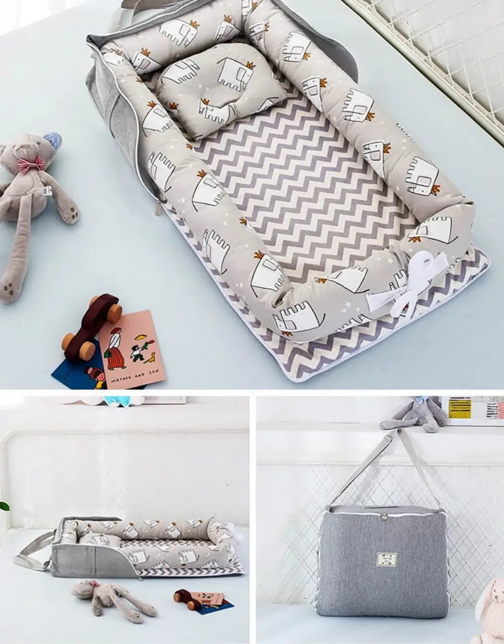 Onze newborn babynest-wieg helpt de overgang van babybedje naar peuterbed te vergemakkelijken. De ingebouwde, luchtdoorlatende bumpers fungeren als bedrails en geven kleintjes een knus gevoel van veiligheid in hun bed. Dankzij het lichte gewicht en het ergonomische ontwerp is deze wieg voor in bed zeer draagbaar.