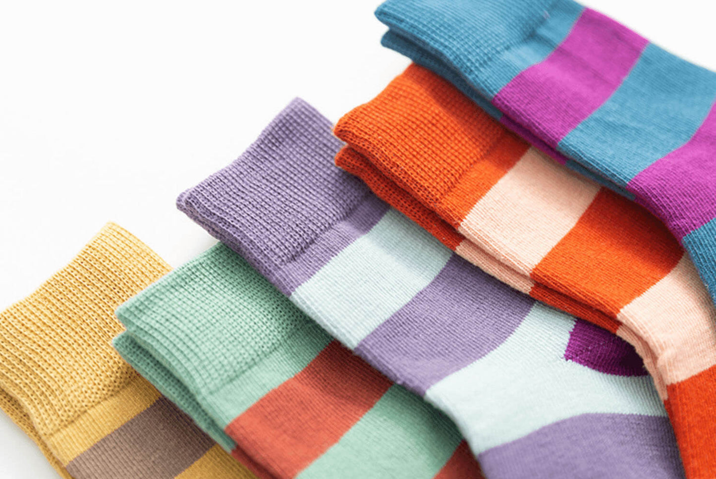 Pakket van vijf meerkleurige geborduurde en gestreepte baby- en kindersokken. Ademende, zweetabsorberende en geurwerende kindersokken.