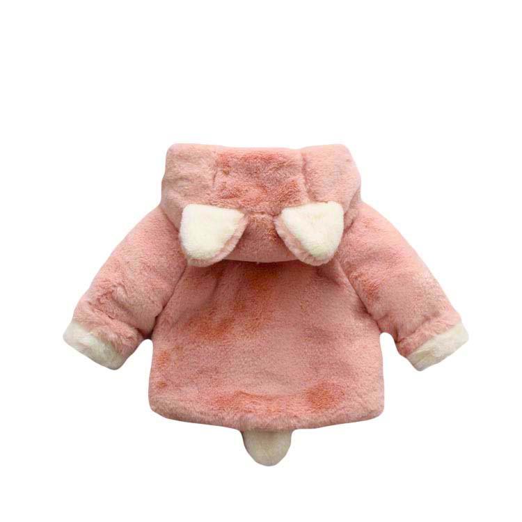 Een pluche zachte kinderwinterjas met capuchon is een leuke toevoeging aan de babywinteroutfit. Het geeft een aantrekkelijk uiterlijk met oren in konijnenstijl op de capuchon en een staart op de achterkant van de vacht. Het buiten- en binnenbontmateriaal geeft je kind een zacht en pluchen gevoel in het koude winterseizoen, een veelzijdige wintertoevoeging.