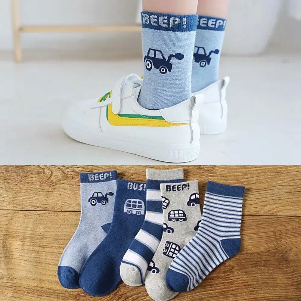 Gezellige en speelse set van 5 multifunctionele sokken voor jongens is perfect om kleine voetjes warm en stijlvol te houden tijdens de herfst en winter. Deze sokken zijn gemaakt van ademend katoen, absorberen zweet en gaan geurtjes tegen, waardoor ze de hele dag comfortabel blijven. Met een mix van leuke patronen, waaronder auto's, strepen, effen kleuren en schattige emoji's, zullen deze sokken favoriet zijn bij zowel peuters als kinderen.