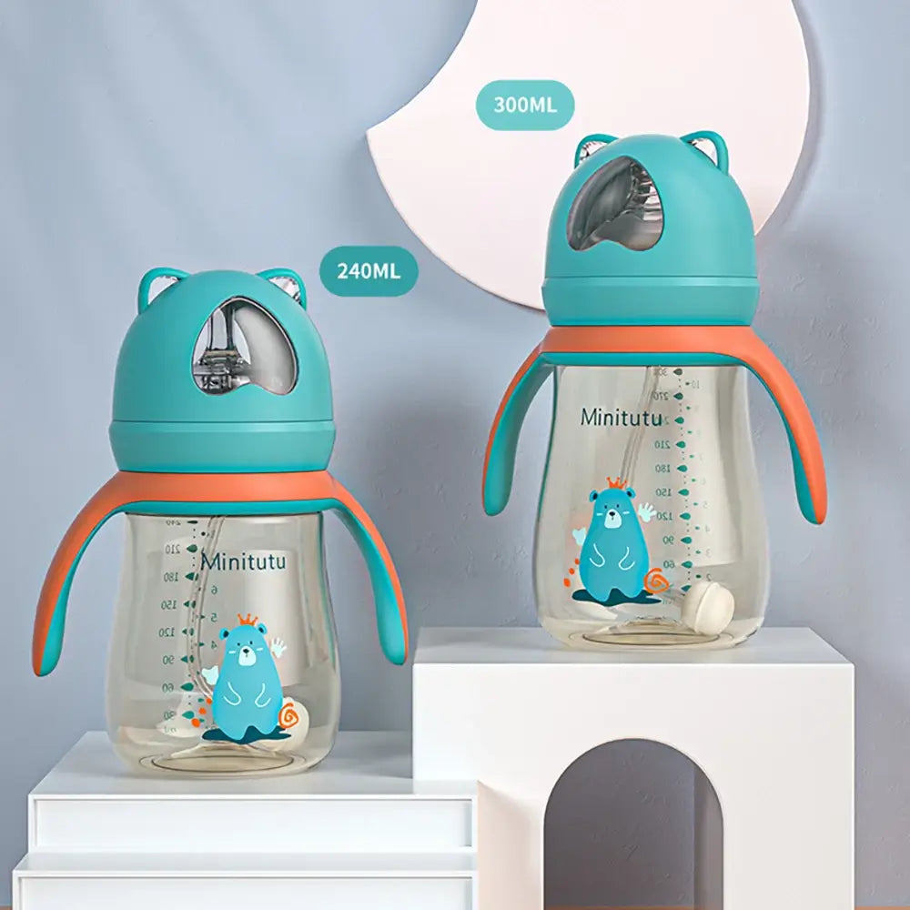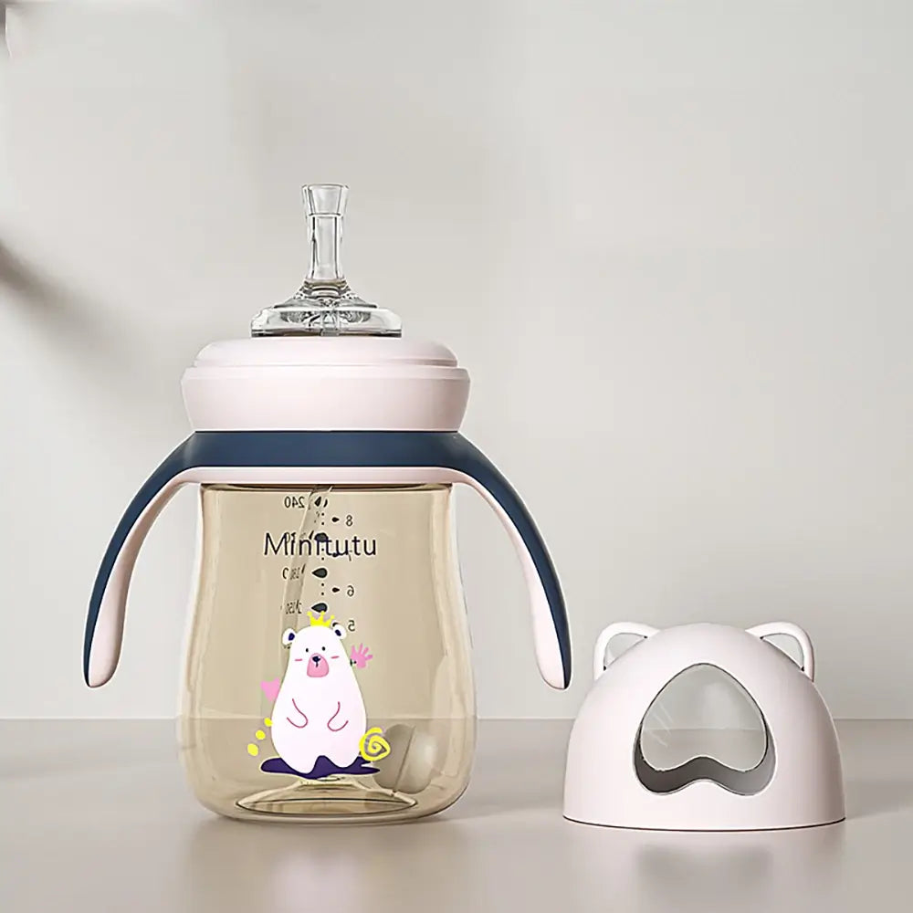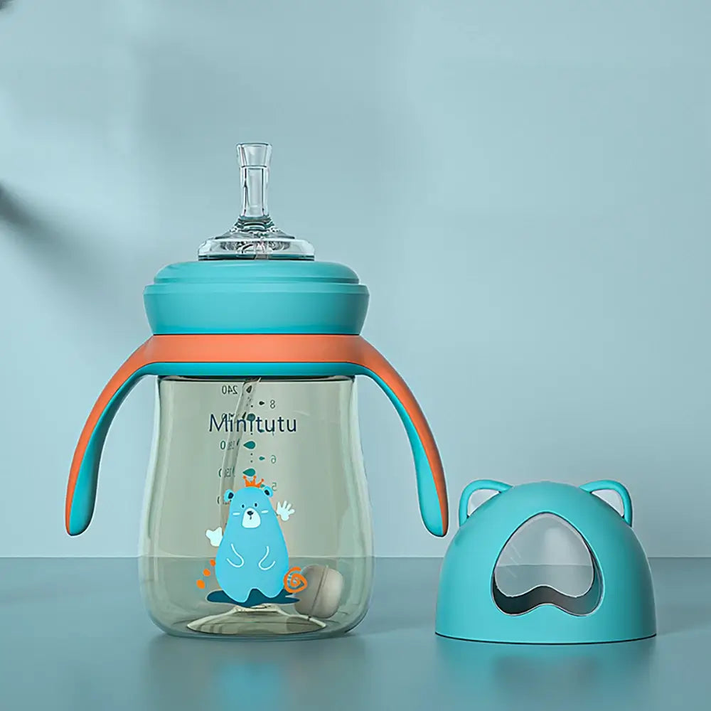 Baby drinkbeker met zacht zuigmondstuk zorgt voor probleemloos eten en drinken. Gemaakt van PPSU-materiaal, het is sterk, duurzaam en veilig. Met een anti-verstikkingszwaartekrachtbal in de sipper en gemakkelijk vast te houden handgrepen kan je kleintje genieten van comfortabele slokjes in elke positie.