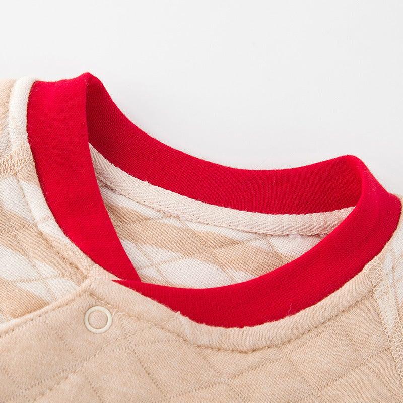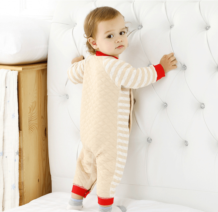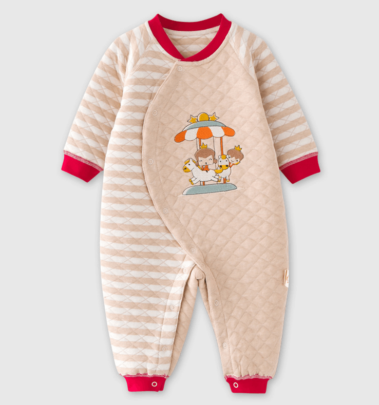 This wrap front style jumpsuit will bring extra soft snuggles. It snaps open along the side with a wrap-style closure, so you don't have to worry about pulling it over their head.