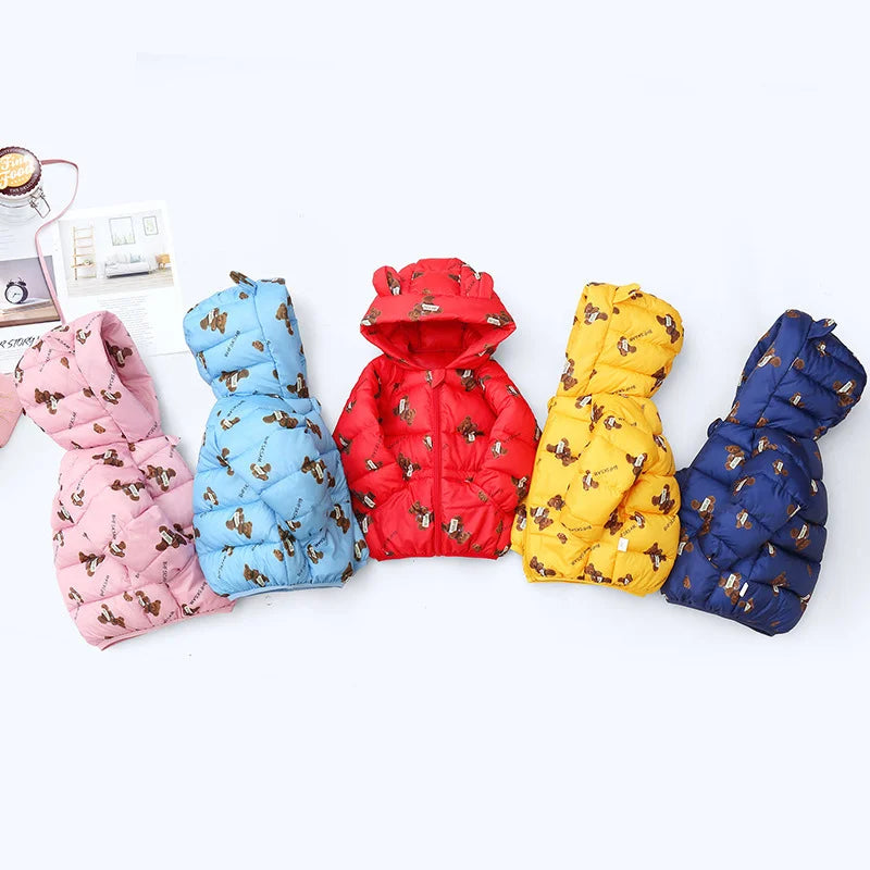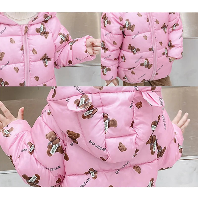 Stay snug with BabyBear Padded Winter Jacket, the perfect blend of style and warmth for your little ones. Crafted with a light and delicate touch, this windproof jacket for toddlers ensures snug comfort all winter long. Its bear print and bright colors add a touch of charm. Stay snug with a hood, long sleeves, zipper closure, and spacious front pockets.