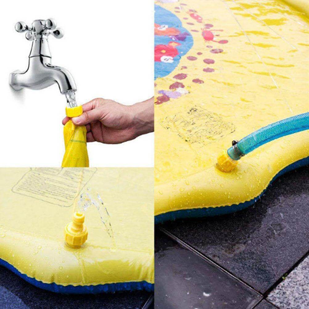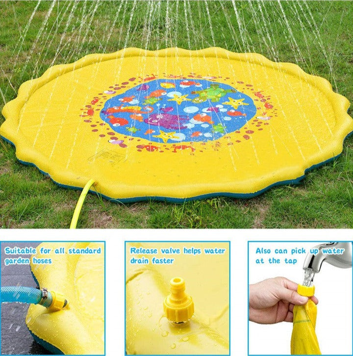 Kids love to play in the water, especially in the hot summer. This large play sprinkler water mat for kids gives children more space to play and enjoy the fun of sprinkling water like in a kids mini swimming pool. Kids can enjoy natural bathing at home, outdoors and on the beach.
