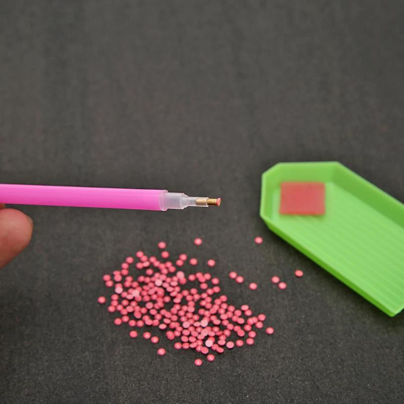4. According to the corresponding color code, clamp the corresponding resin diamonds with pen and place it on the sticky surface of the drawing.