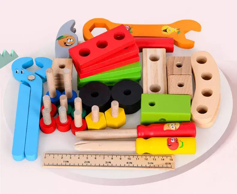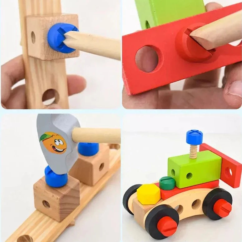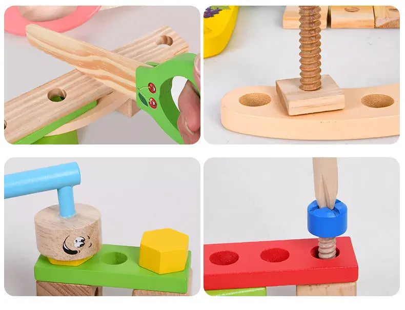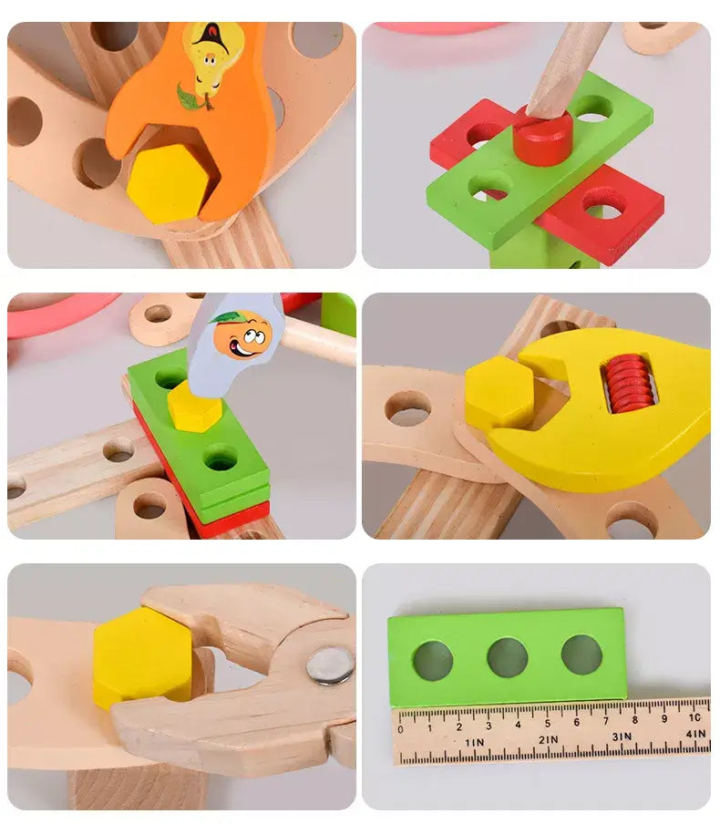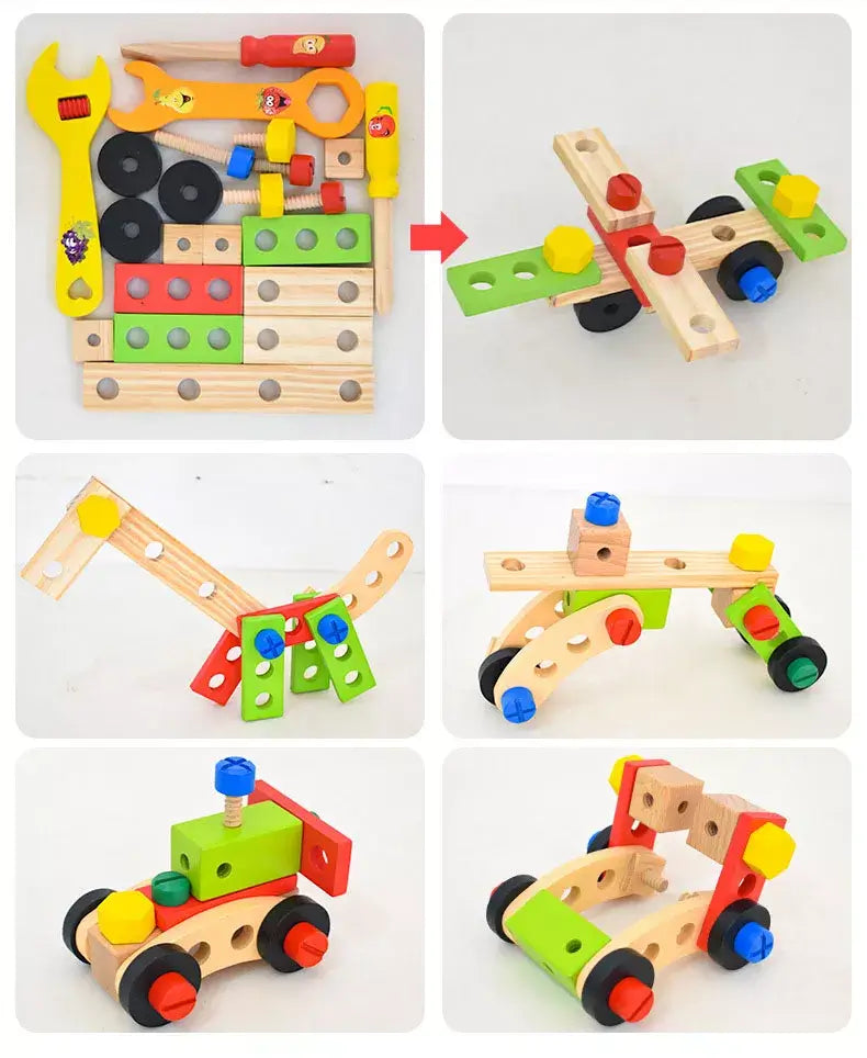 With these wooden construction toys, kids would assemble and take apart toys, allowing them to learn the names of different tools and improve their cognitive ability and logical skills during play.