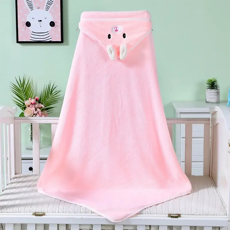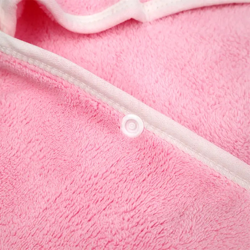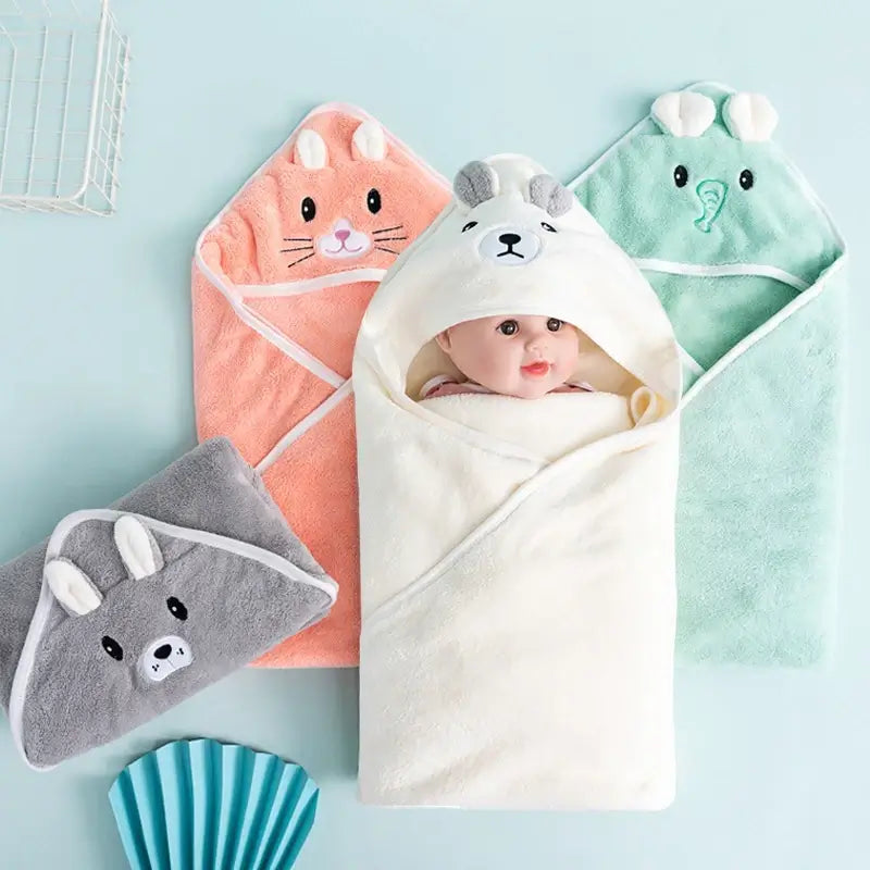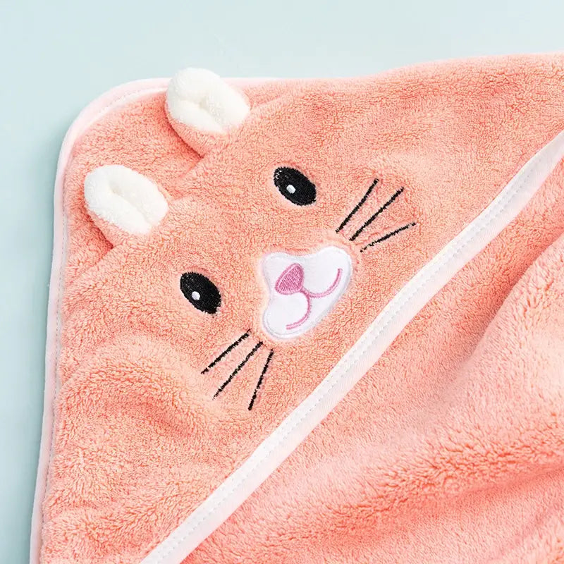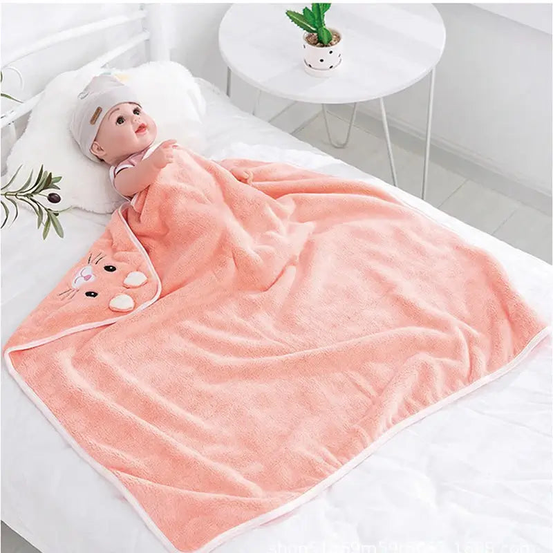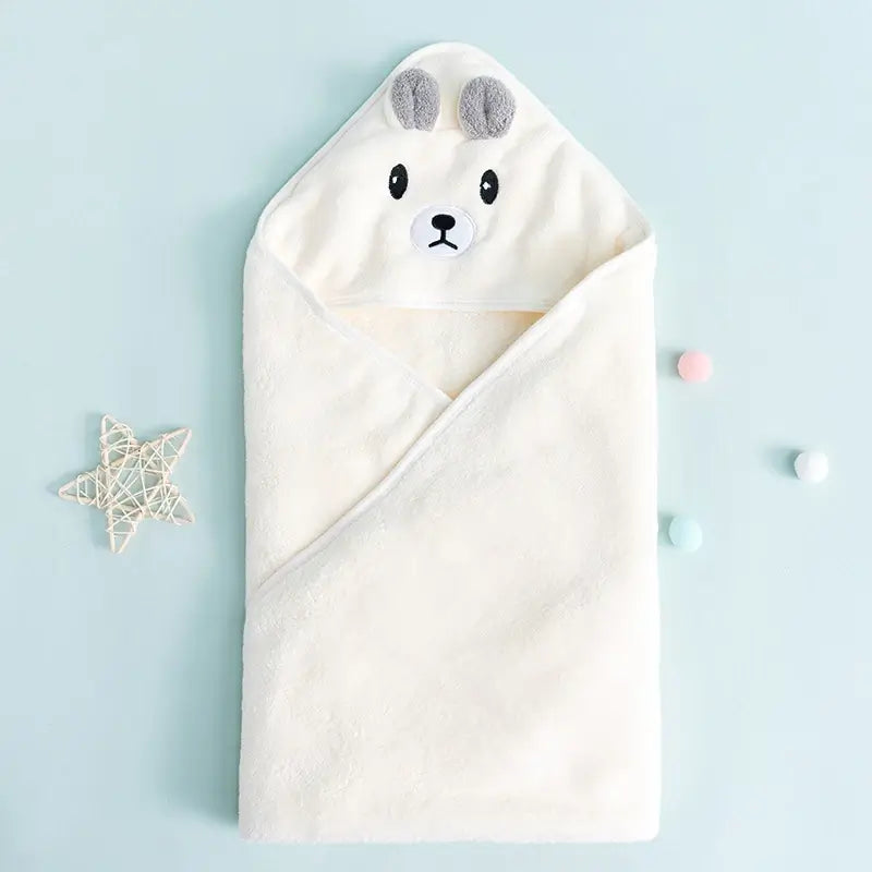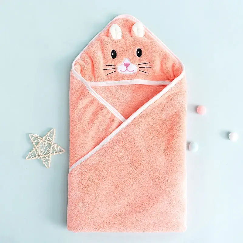 Wrap your little one in this soft and adorable coral fleece blanket after a bath, or swaddle for comfortable bedtime. The sweet hood with cute embroidery and sticking-out ears holds the robe in place and turns the evening routine into a warm and cozy time.