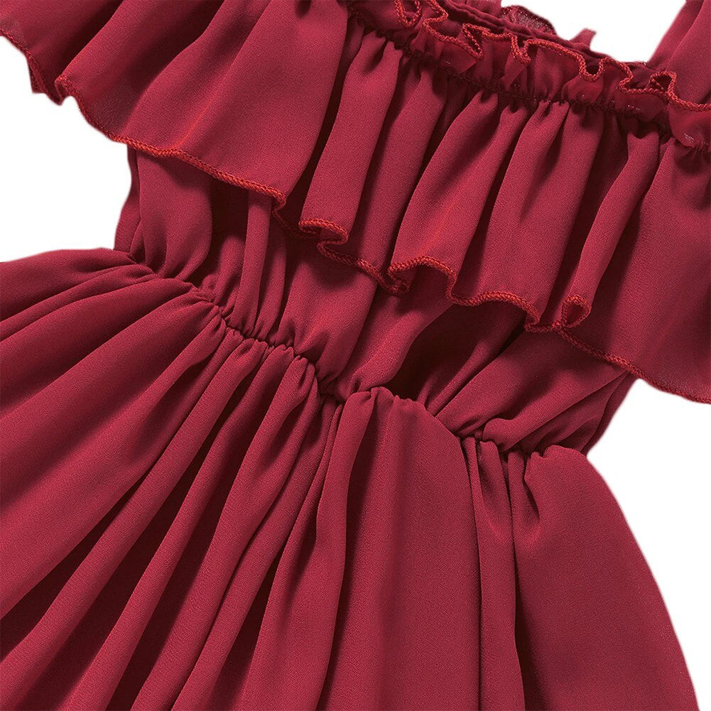 Stylish off-shoulder baby girl dress features a ruffle skirt and soft shoulder straps is perfect for your baby fashion. It is a chic and comfortable dress for baby girls that will make your girl look more attractive. It comes in three pretty colors. You can pair this dress with your favorite sandals, socks and other accessories to complete your little girl's summer style.