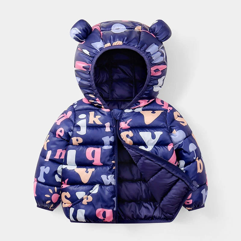 Smyg in i mysig värme med vinterjackan med luva! Denna mjukfodrade jacka för småbarn och barn har roliga tecknade serier och bokstäver för att glädja de små. Polyesterfiberfyllningen och huvan ger en rostig värme för kyliga dagar. Söt stil möter praktisk komfort i detta barn och småbarn väsentliga.